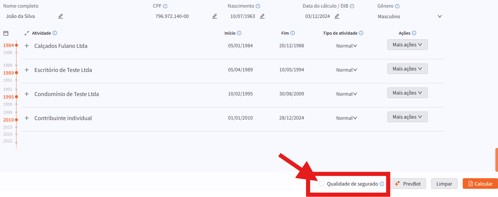 O Previdenciarista conta com uma calculadora de Qualidade de Segurado embutida no sistema de Cálculos de Benefícios Previdenciários.