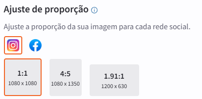 O Feed do Instagram, por exemplo, pode receber imagens em paisagem (horizontal), retrato (vertical) ou quadradas. Você escolhe o formato na área "Ajuste de proporção", ao criar um novo post.