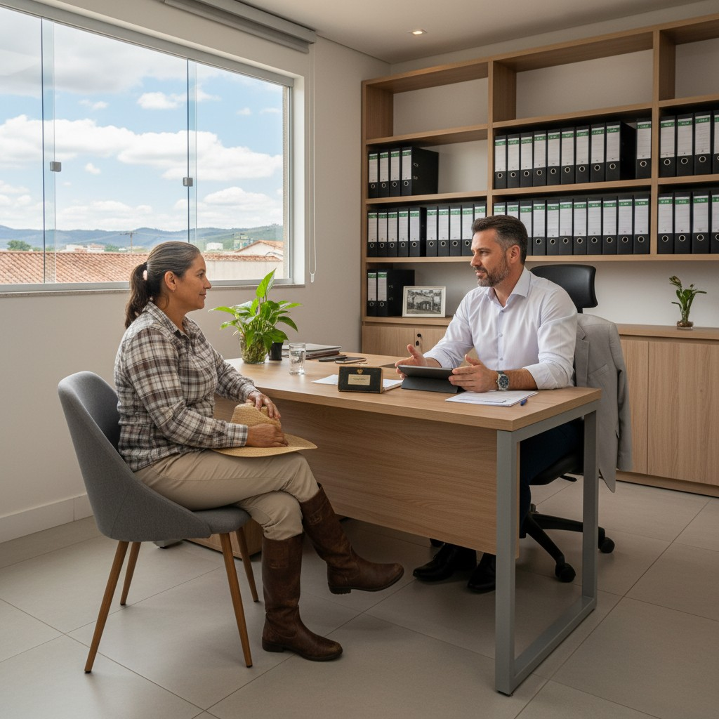 E aí podemos brincar com outras situações, como a cliente acima conversando com seu advogado no escritório.