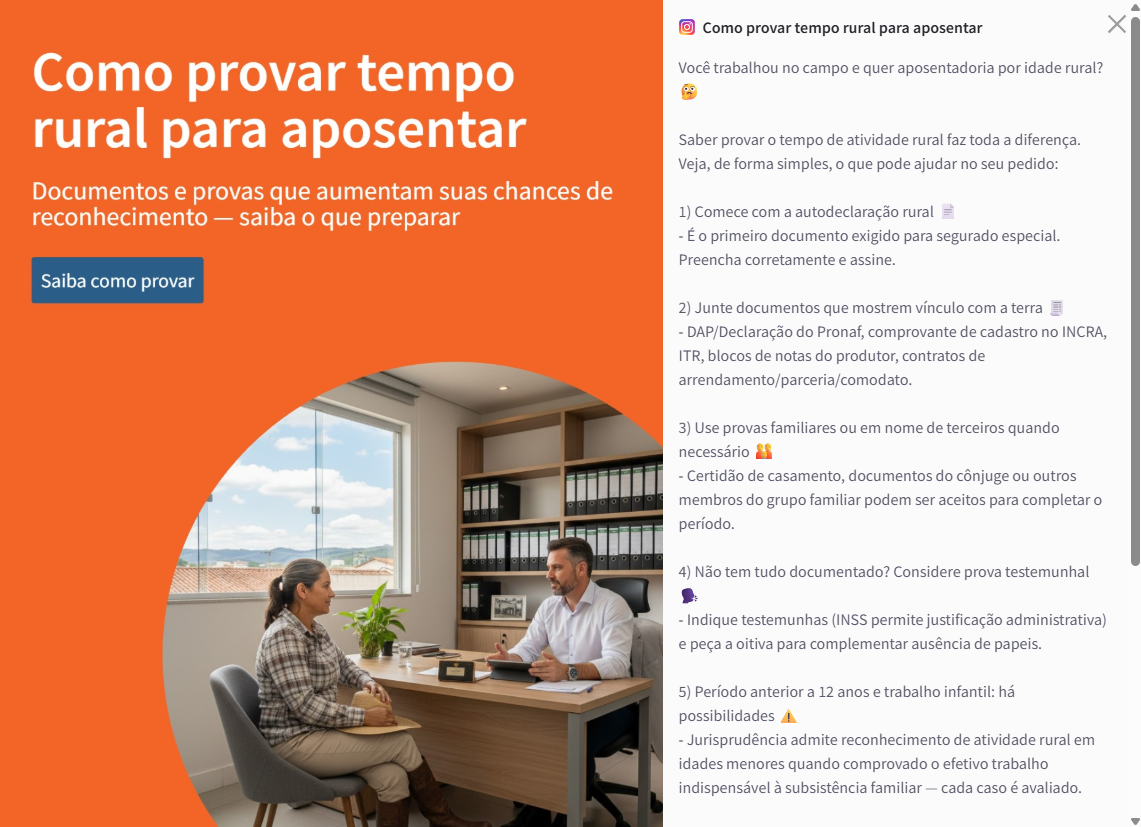 E a partir disso você gera um post sobre produção de provas em aposentadoria do trabalhador rural.