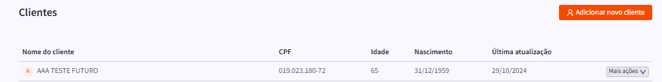 Após, serão mostrados todos os seus clientes salvos. Clique no nome do cliente desejado para acessar suas informações.